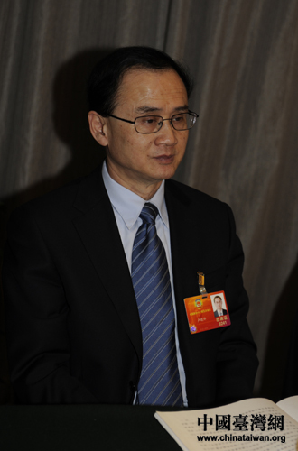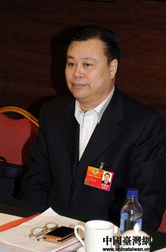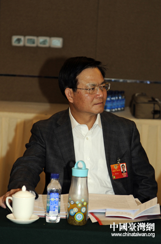 全国政协委员孙太利正在听取小组讨论。(中国台湾网发)