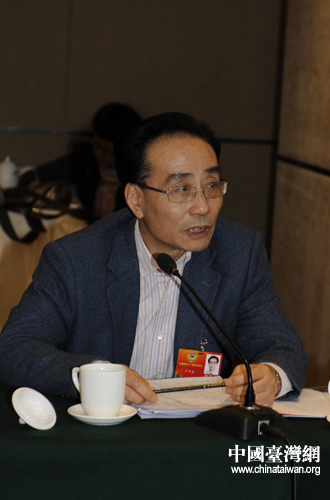 全国政协委员卢步东在小组讨论会上发言。(中国台湾网发)