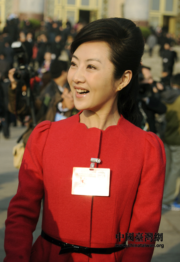 人大代表、西安电视台节目主持人孙维一身红装亮相天安门广场。(中国台湾网 发)