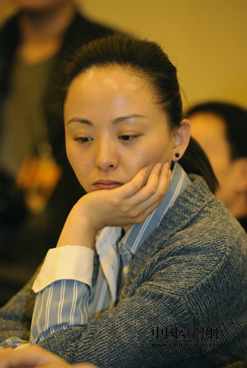 全国政协委员、北京人民艺术剧院国家一级话剧演员宋丹丹在小组讨论上建言献策。(中国台湾网 发)