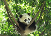 大熊猫受惊吓爬上树