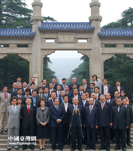 吴伯雄在“博爱广场”发表讲话,感谢南京市政府对中山陵的重视和维护,并表示明年孙中山奉安中山陵80周年之际,还要来拜谒。他并希望两岸直航后,可从台湾直飞南京。(摄影:中国台湾网 田云鹏)