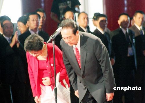 11月7日上午,海协会会长陈云林结束历史性的5天4夜访台行程,率海协会协商代表团,乘华航两岸周末包机CI7951航班,10时许启程返回北京。陈云林临行前在下榻的台北圆山饭店表示,他将继续努力为两岸同胞做有益的事情。他并一鞠躬感谢台湾各界,尤其是警方几天来的辛劳。 中新社发 黄少华 摄