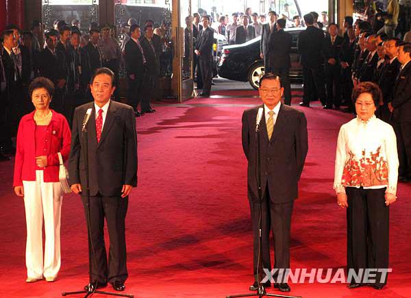 11月7日8时20分许,海协会会长陈云林及协商代表团一行离开下榻的台北圆山饭店,前往桃园机场乘机返回北京。海基会董事长江丙坤(右二)到饭店送行。新华社记者 陈斌华 摄