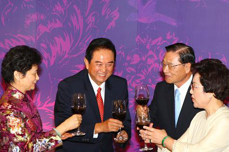 江丙坤台北地标夜宴陈云林 妙联高挂迎宾朋]]>