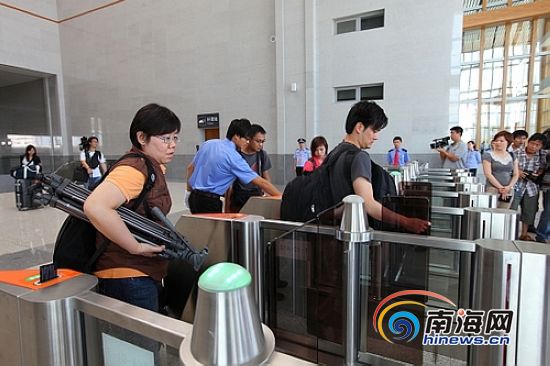 境外媒体记者走出东环铁路三亚火车站(南海网记者 骆云飞)