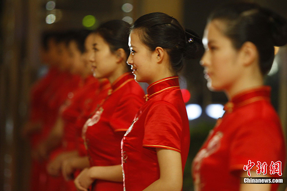 靓丽的礼仪小姐亮相博鳌亚洲论坛国际会议中心为嘉宾提供服务。博鳌亚洲论坛2011年会于4月14日至16日在海南博鳌举行,本届年会的主题是“包容性发展:共同议程与全新挑战”。