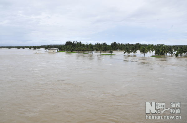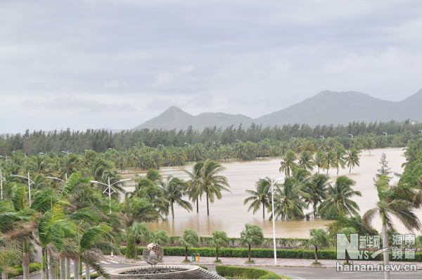 资料图片:去年洪灾期间,博鳌高尔夫球场一片汪洋,球道水深2米。中远博鳌提供