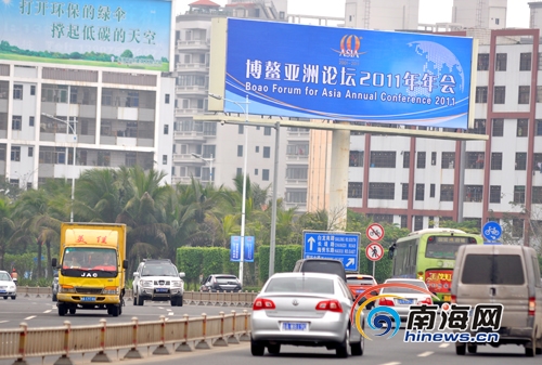 竖立在海南省海口市海府路的大广告牌提示人们,离2011年博鳌亚洲论坛的日期越来越近。南海网见习记者 秦彦 摄
