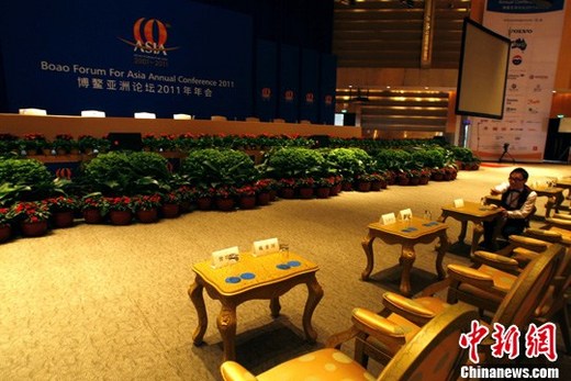 4月13日,博鳌亚洲论坛大会在海南博鳌准备就绪。4月14至16日,博鳌亚洲论坛2011年年会将在此举行,今年年会的主题是“包容性发展:共同议程与全新挑战”。中新社发 张宇 摄