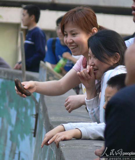 投喂者有许多是成年人。