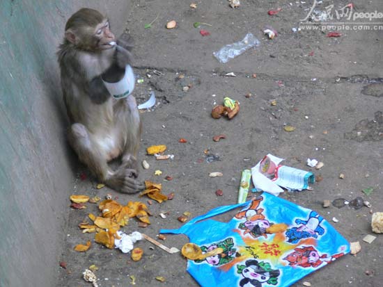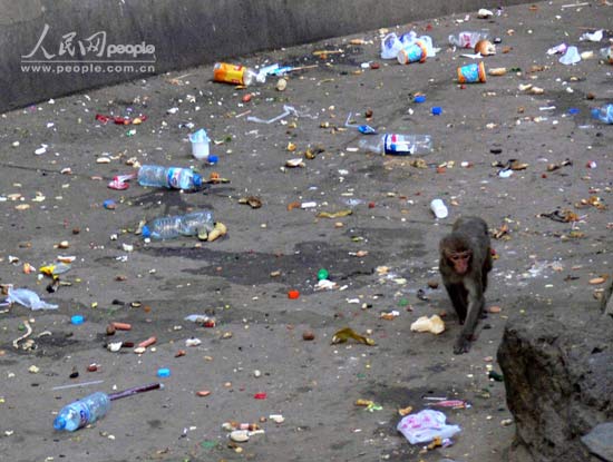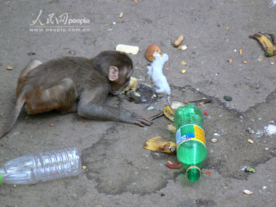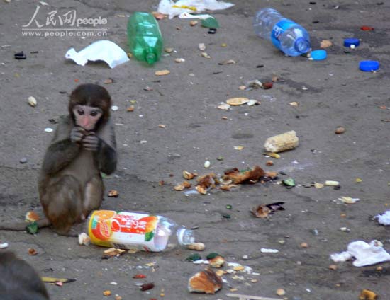 | 猴子们终日以垃圾为伴。 |