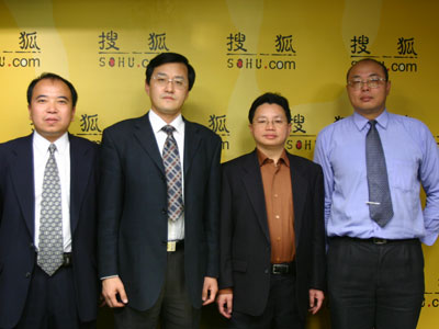 2005年10月24日,中国台湾网与搜狐网合作,对《台湾同胞抗日斗争展览》的三位撰稿人进行专访。图中从左到右分别为:中国社科院台湾史研究中心褚静涛先生,台湾史研究专家、台盟中央宣传部副部长、台海出版社社长安然先生,全国台联联络部部长、前全国台联研究室副主任、全国台湾研究会理事杨毅周教授,中国台湾网副总编辑吴彤先生