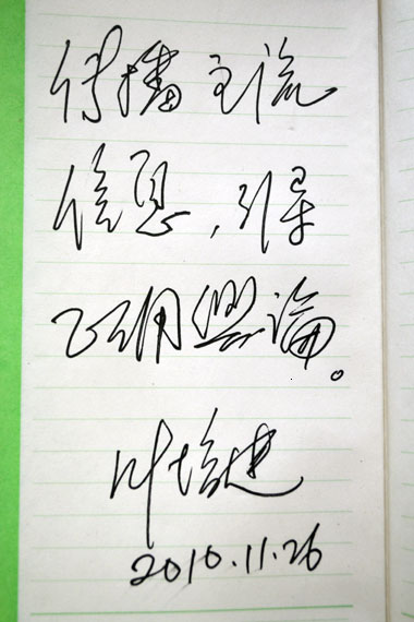 随后,叶培建院士为本报欣然题词——“传播主流信息,引导正确舆论”。此时,陪同叶培建来昌讲学的“嫦娥二号”卫星副总设计师、江西籍老乡饶炜也为本报题词——祝家乡《信息日报》越办越好!