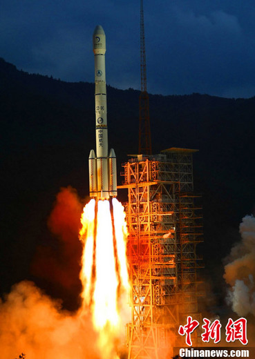 资料图:10月1日18时59分57秒,搭载着嫦娥二号卫星的长征三号丙运载火箭在西昌卫星发射中心点火发射升空。中新社记者 宋吉河 摄