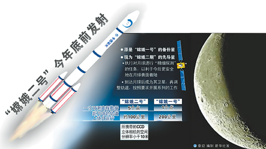 9日,国家国防科技工业局对外透露,目前我国探月工程二期“嫦娥二号”任务进展顺利,包括嫦娥二号卫星、长征三号丙运载火箭等在内的五大系统准备工作基本就绪,正在做发射前的测试准备,计划于今年年底前实施飞行试验任务。