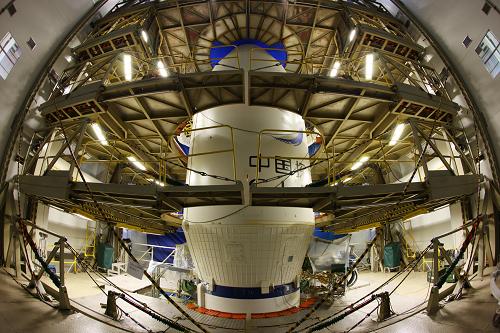 “嫦娥二号”卫星已吊装完毕,测试正常,等待加注,准备发射(9月29日摄)。记者从探月工程五大系统有关负责人处获悉,目前,各大系统产品和技术状态良好,嫦娥二号发射前准备基本就绪。新华社发(秦宪安 摄)