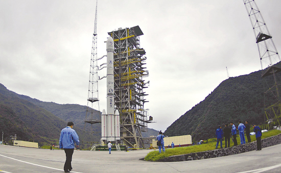 嫦娥二号探月卫星目前各大系统产品和技术状态良好,发射前准备基本就绪。搭载着嫦娥二号探月卫星的长征三号丙运载火箭已经由总装厂房平移至2号固定发射塔。 CFP供图