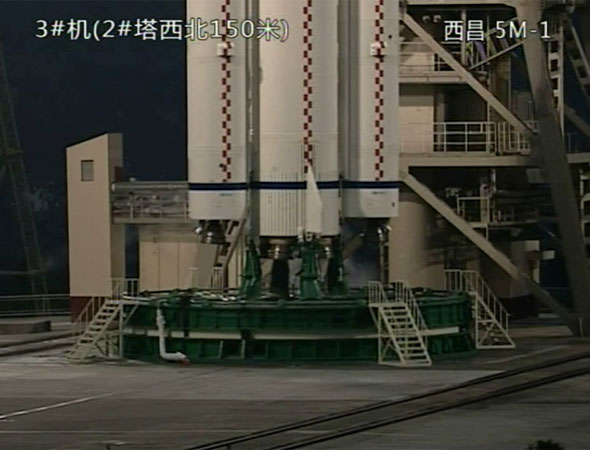 运送嫦娥二号升空的长三丙火箭点火前瞬间。新华网 李非摄