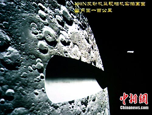 11月12日,承担“嫦娥二号”卫星3台监视相机和1台降落相机研制任务的北京空间机电研究所举行“嫦娥二号”卫星微小相机产品推介会称,这4台微小相机随“嫦娥二号”卫星在太空运行过程中,均拍摄到清晰的图像。图为会上播放“嫦娥二号”490N发动机监视相机在太空工作的画面。中新社记者 孙自法 摄