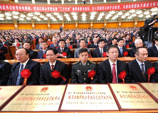 12月20日,中共中央、国务院、中央军委在北京人民大会堂举行大会,隆重庆祝我国探月工程嫦娥二号任务圆满成功。这是出席庆祝大会的代表。新华社记者刘建生摄