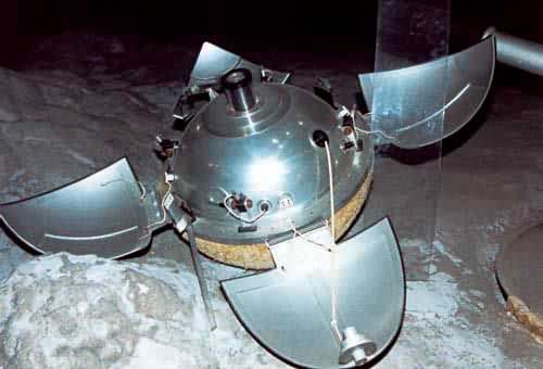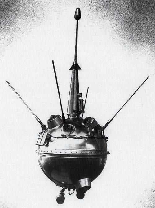 图1.1959年9月12日发射的月球2号,两天后飞抵月球,在月球表面的澄海硬着陆,成为到达月球的第一位使者,首次实现了从地球到另一个天体的飞行。它载的科学仪器舱内的无线电通信装置,在撞击月球后便停止了工作。