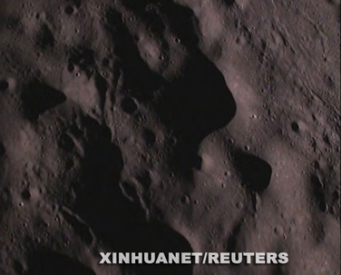 2008年11月14日,印度空间研究组织宣布,印度月球探测器“月船1号”所携带的月球撞击探测器当天晚间成功撞击月球。图为印度空间研究组织提供的月球撞击探测器上的照相机拍摄的月球表面的照片。新华社/路透