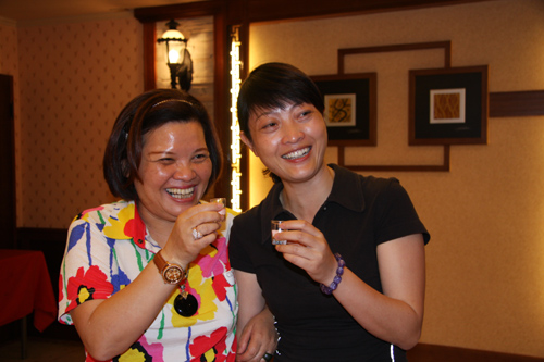 遵义青年联合会会长谭诤与台湾贵州同乡会会长申玉玲共同举杯