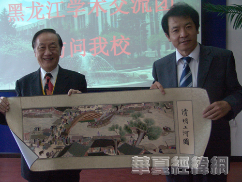 程伟副校长赠送《清明上河图》给郁慕明主席