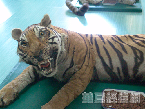 实验中心的标本馆里有各种珍贵的动物标本 图为东北虎