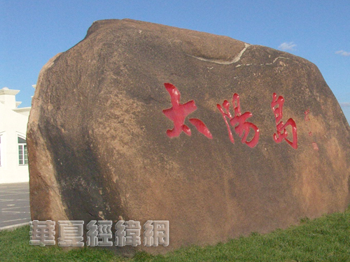 位于东区入口处矗立着一块长7.5米,厚2米,高4.3米,重150吨的天然奇石——太阳石。奇石出于金源故地,阿什河边。传为兜率宫太上老君遗落之丹,金太祖少年时,在石上磨刀励志;成年时,与将领在石上划灰议事,灭辽攻宋;抗联将士在此“火烤胸前暖,风吹背后寒”,当然也还有许多烩炙人口的故事。一个个传说,无数悠远的往事,都凝结于这一巨灵石。而今,它巍然耸立在太阳岛上,赵朴初老人虬劲、灵动的三个大字,使它成为太阳岛的标志。人们在感叹着大自然造物伟力的同时,也会为太阳岛自然风光的人文内涵所倾倒。