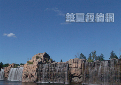 位于中日友谊园东侧,占地面积约1.5公顷,长132米,高7米。是利用原有地势之差,建造的一气势磅礴的仿自然大型水景。长廊内有仿自然的溶洞,曲径通幽、灯光掩映,与仿山岩的摩崖石刻、岩化、石钟、石笋相映成趣。瀑布分段设置,时而雨帘重重,飞扬激流湍急,时而水幕叠影重幻,使游人身处廊内既可远眺湖景,亦可听雨品茗,在休闲观景中充分感受瀑布长廊美仑美奂的景色。