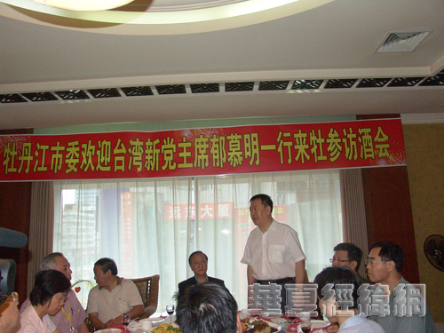 华夏经纬网8月3日讯:台湾教育交流访问团一行今天中午到达牡丹江市,牡丹江市委副书记吴长利举行了欢迎酒会。