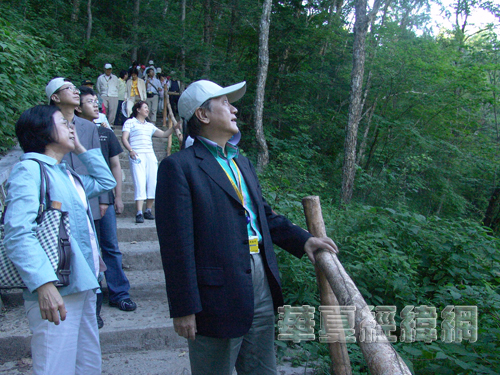 下午访问团赴镜泊湖地下森林参观。镜泊湖地下森林位于黑龙江省牡丹市境内。地下森林是古代火山喷发之后在凹陷的火山口继续长出的森林,它们长在露天,承受着阳光和雨露,只是因为它们生长在火山口,即深陷于地面之下。