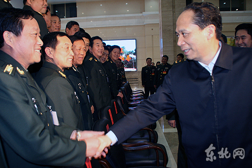 5日下午,省委书记、省军区党委第一书记吉炳轩在省委常委、秘书长刘国中陪同下,会见了参加省军区党委九届十二次全委扩大会议的省军区党委委员。会见中,吉炳轩与大家一一握手问候,对他们为黑龙江边防建设和省军区部队建设所做出的贡献表示慰问和感谢,并向广大部队官兵、民兵预备役人员及职工、家属致以节日的问候。
