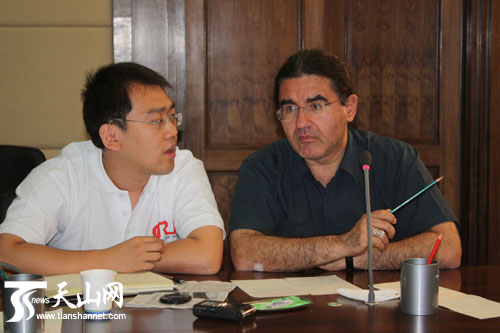 中国国际广播电台(CRI)土耳其籍记者在提问