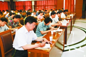 市水务局副局长职位公选民主测评现场。 秦童永摄