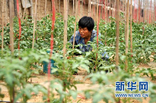 6月25日,山西闻喜县上镇村村民在蔬菜大棚内劳作。