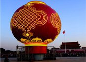 天安门广场立巨型红灯笼迎国庆