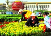 天安门广场摆放鲜花迎国庆