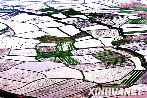 眼下,广西融水县的多数村寨已进入插秧阶段,农民们在水田里忙碌,美丽的田园犹如一幅织锦。新华社发(龙涛摄)
