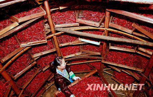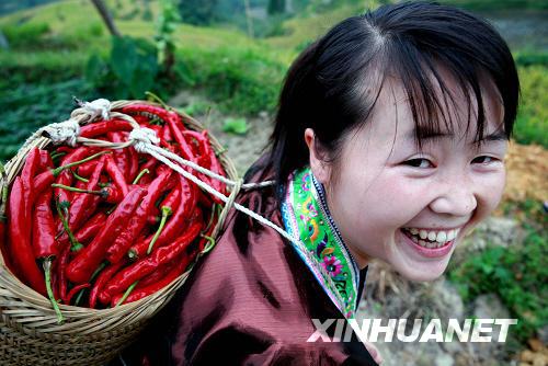 广西融水县杆洞乡花孖苗寨的辣椒多植于深山中,肉厚香甜、辣度适中。今年以来,当地政府组织村民成立辣椒生产专业合作社,在技术上统一指导并包销产品,使全寨的辣椒产量和质量都有大幅提高。新华社发(龙涛 摄)