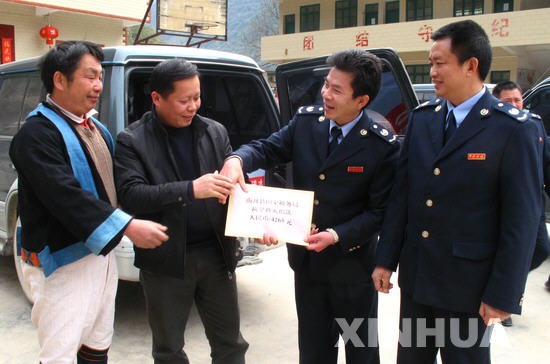 南丹县国税局领导给受灾瑶族同胞运水