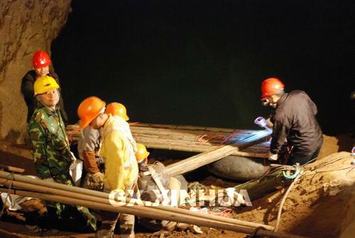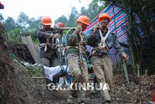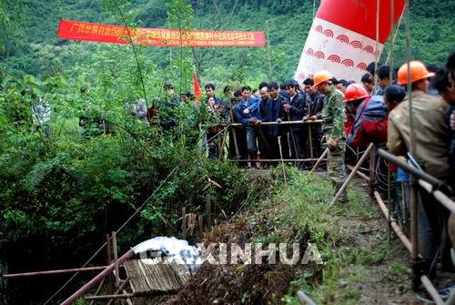 在全区抗旱找水建设示范点——广西罗城县东门镇燕塘村小公凤屯地下河天窗水源点,广西矿业建设公司抗旱施工突击队经过11个昼夜的奋战,搭设钢管脚手架转运平台4个、洞内钢管爬梯80米,安装深水潜水泵1台及抽水管、电缆130米,最终成功提水,受到了上级及人民群众的一致好评。该提水设施的完工,使得该水源点具备日出水量1200吨的能力,可解决罗城县周边17个自然屯4800多人的生活饮用水、2500亩以上农田灌溉用水的问题。(卢宁)