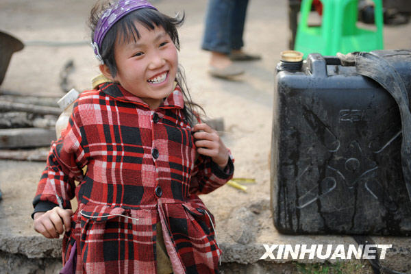 六盘水市水城县滥坝乡木房村是贵州省受旱最严重的地区之一,当地随处可见村民们背水的身影。在他们当中,一些背水的女孩格外引人注目,她们大多只有十几岁,瘦弱的肩膀上却背着几十斤重的大水桶,她们并没有被百年一遇的大旱吓倒,而是尽自己所能,帮家里背水、洗衣、做饭,坚强、乐观的品质在灾难和困苦的环境中显现出来,令人动容。新华社记者 刘续 摄