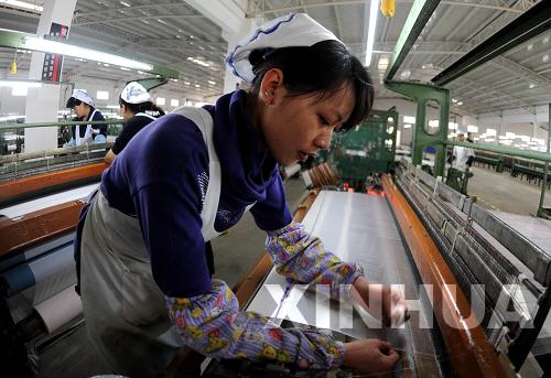 4月14日,广西上林县一名纺织女工在加工蚕丝。