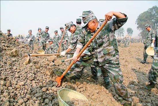 小海子坝塘是草坝镇波黑村280户村民赖以生存的“生命之源”,该村村民的生活用水和2000多亩土地的生产用水都靠它,旱情的加深使得该坝塘干枯见底。在千方百计确保群众饮水的同时,县、乡党委、政府决定利用坝塘干枯扩容修渠,大兴水利建设。面对这一重任,空军某部主动请缨,共出动官兵550人、工程车等车辆35辆开赴波黑村,投入清淤扩容、兴修水利抗旱促春耕战斗中。目前,已挖掘清理龟裂土方约2.8万立方米。