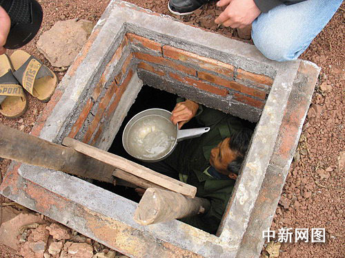 任美宽老人在水窖里艰难取水 作 者:阳明