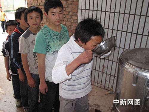 堰村小学学生排队喝水 作 者:阳明