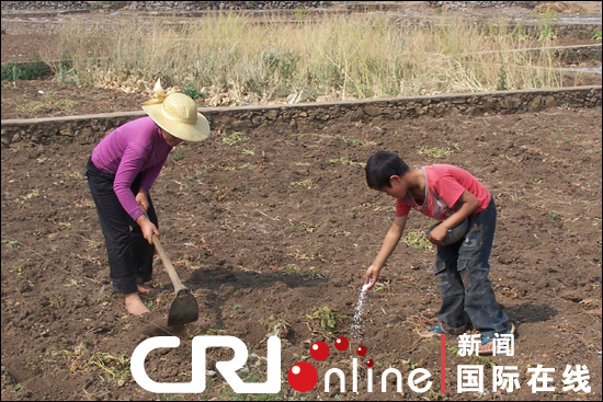 母子抢种蔬菜